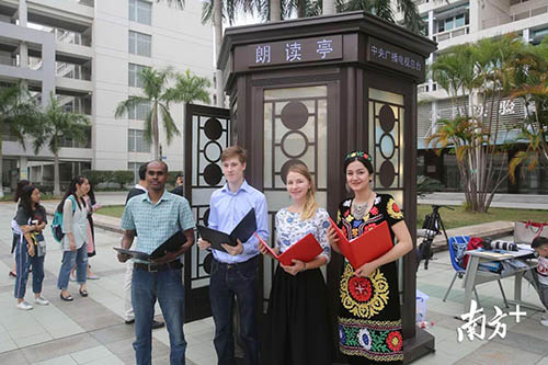 來到朗讀亭的有華工離體老教授,現(xiàn)任校領(lǐng)導(dǎo),中外在校生,華工研制的機器也進亭朗讀了。