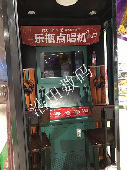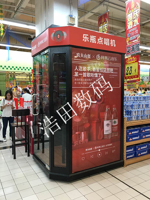 超級歌手為網易云音樂×農夫山泉定制“樂瓶點唱機”,點唱設備進駐北京、上海、杭州、合肥、濟南等多個一二線城市商場超市,和4億多的農夫山泉礦泉水同時展出,為跨界合作增加更多亮點。