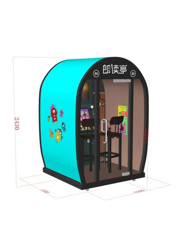 4. 朗讀亭圓頂版:尺寸相對于其他幾款,尺寸上更為小巧,高度僅為2.4m,有別于傳統朗讀亭的外觀,這款朗讀亭為圓頂的設計,占地面積更小。