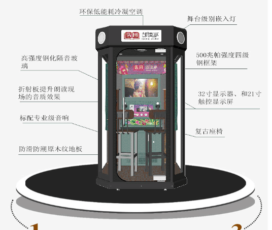7.唱歌朗讀亭:全國首創豪華版唱歌+朗讀二合一的朗讀亭。可自由切換朗讀模式和唱歌模式,朗讀可設置成免費,唱歌可設置為多少元一首或者多少元多少分鐘。