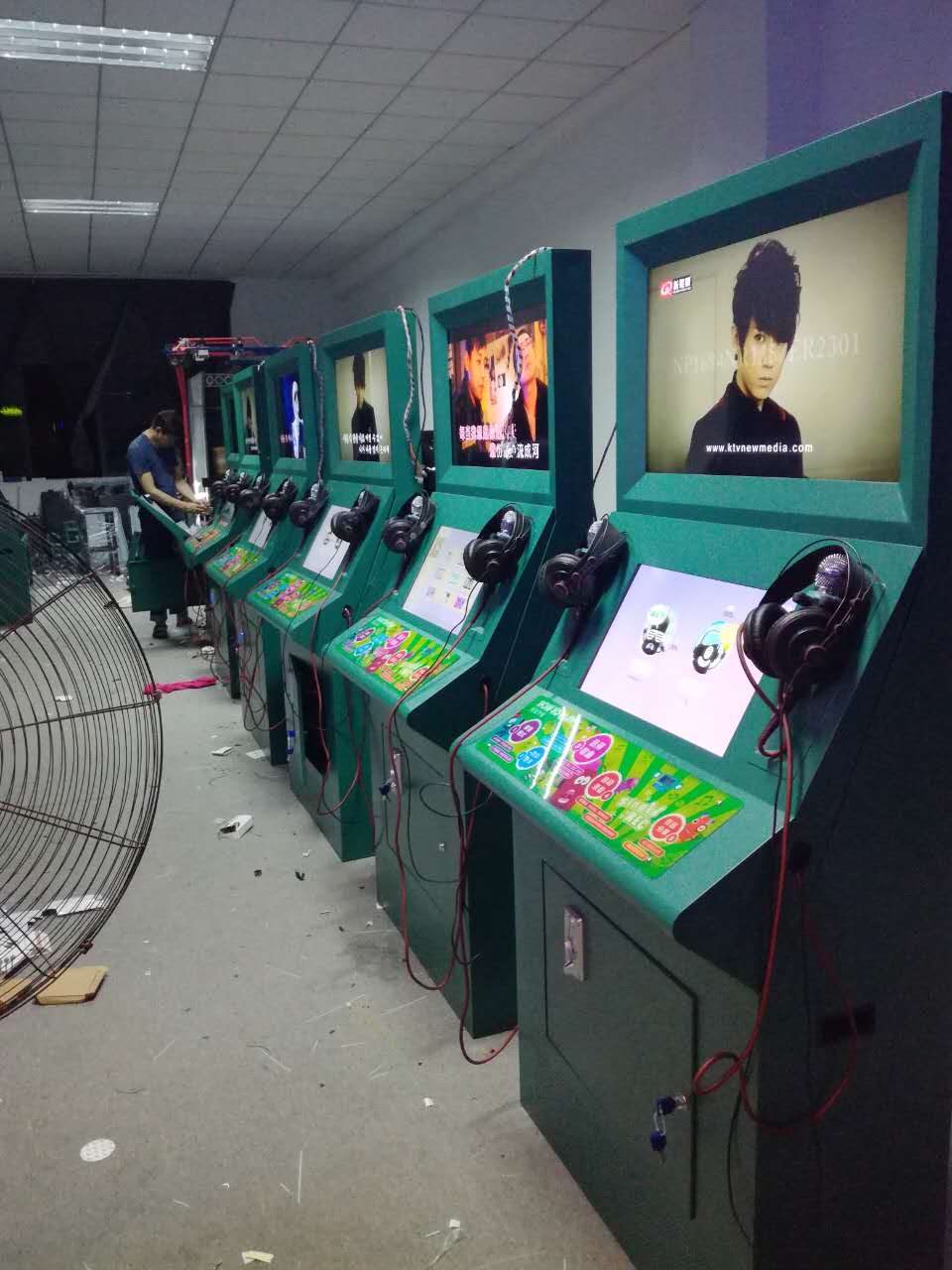 隨后我們看到超級歌手迷你ktv自助唱吧的測試車間,一共幾排,每排并列的十幾臺主機柜,測試員在一旁安裝和調試,工作人員介紹是做出廠包裝前的燒機測試,除了保證產品材料設備的完好,還要保證后臺系統的正常運營,因為設備擺放的都是商場、影院、候車廳等,24小時都有營業的地點,對產品可運作的時間要求是比較高的。而超級歌手自助唱吧為保證每一位合作商的無憂經營,對燒機測試相對于行業標準會更嚴格。測試結束后才能把機器打包發走,保證每一臺機都能正常運作和實現基本功能。