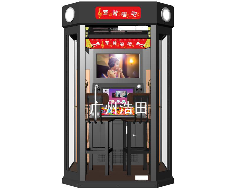 軍營移動唱歌機KTV室內空間并不大,因此占地面積小,為了具有良好的唱歌和錄音效果,浩田科技打造的迷你KTV軍營唱吧采用錄音棚設備標準,傳統KTV房容量大卻局限場所、消費金額和時間,能容納2-3人的迷你ktv點唱機擺脫了傳統音樂機的缺乏空間感,沒有隔音的窘迫感,智能唱吧亭有充足的空間感和私密性,隨歌點唱,沒有時間節點,軍營唱吧小型練歌房樂曲具有hifi音響效果,立體聲圍繞,讓演唱者在唱歌時能有錄音棚的體驗,享受歌聲的精彩絕倫。