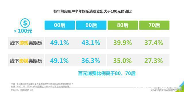 消費(fèi)力提升,百元以上消費(fèi)占比高于80、70后。