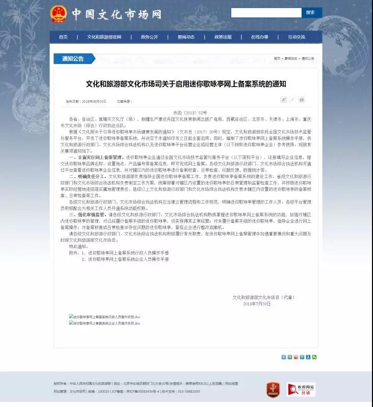 與此同時(shí),也出現(xiàn)了設(shè)備安全難保障、衛(wèi)生環(huán)境較差、歌曲內(nèi)容違規(guī)或者侵權(quán)等問(wèn)題,針對(duì)這些問(wèn)題,2017年,文化和旅游部發(fā)布了《文化部關(guān)于引導(dǎo)迷你歌詠亭市場(chǎng)健康發(fā)展的通知》,全面規(guī)范了迷你歌詠亭市場(chǎng),近日,文化和旅游部文化市場(chǎng)司印發(fā)了《關(guān)于啟用迷你歌詠亭網(wǎng)上備案系統(tǒng)的通知》,通知要求各相關(guān)部門全面實(shí)行網(wǎng)上備案管理,并明確了權(quán)責(zé)分工,規(guī)范了迷你歌詠亭的日常管理和監(jiān)督檢查工作。此消息一出,一石激起千層浪。